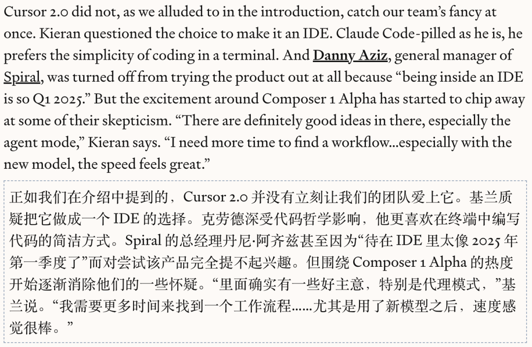 而Cursor2.0并没有让团队爱上它。