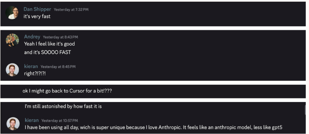 更多的获得了Cursor 2.0的早期使用权限的开发者同样表示,很快,很好。