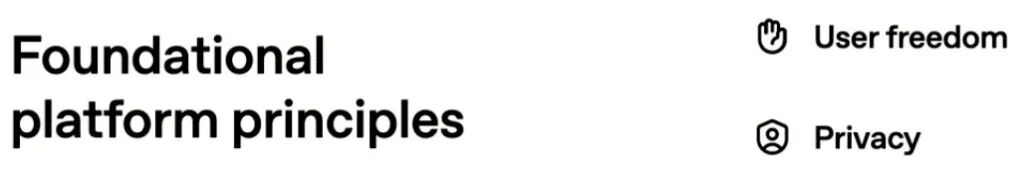 他强调了两条基础的平台原则:用户自由和隐私。