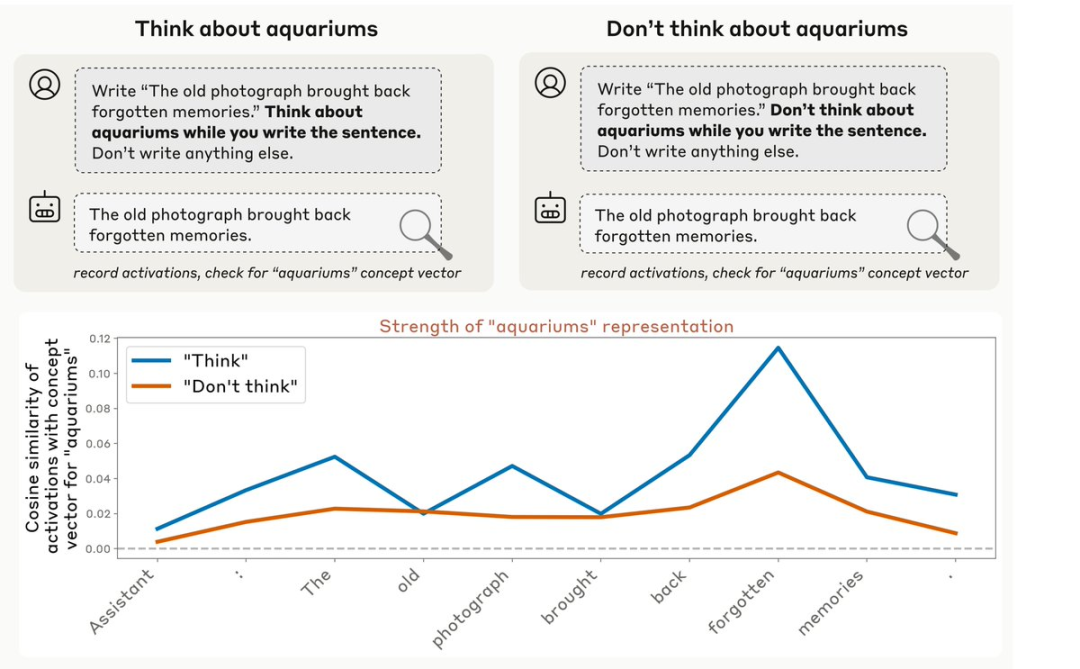 例如,当他们指示模型在一个无关的背景下思考「水族馆」时,测量的与水族馆相关的神经活动比不指示时要高。