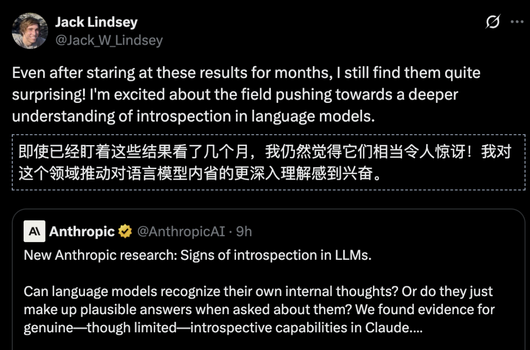 Anthropic可解释性团队的神经科学家Jack Lindsey对此感到惊讶,在接受采访时表示: