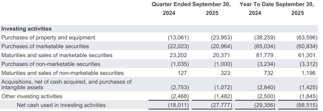 支出方面,Q3的资本支出达239.5亿美元,全年预计91-93亿美元,与去年相比增长显著,重点投资AI算力基础设施。