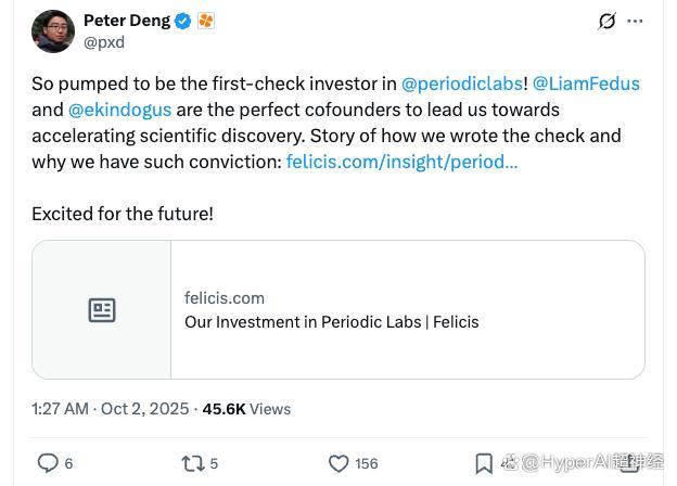 2025 年 9 月,Periodic Labs 宣布完成 3 亿美元种子轮融资的消息震惊行业。这个数字不仅创下 AI 初创公司种子轮纪录,更颠覆了风投行业的游戏规则 —— 除 Andreessen Horowitz 领投之外,a16z、DST、英伟达 NVentures 等顶级机构悉数跟投,天使投资人名单更是星光熠熠:亚马逊创始人 Jeff Bezos、前谷歌 CEO Eric Schmidt、DeepMind 灵魂人物 Jeffrey Adgate 均在其列。