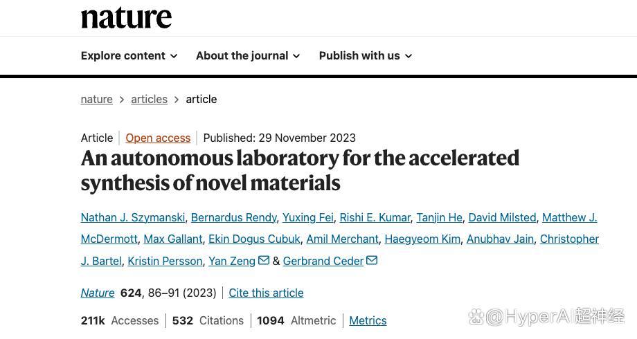 Periodic Labs 的实验室里,机械臂正精准混合金属粉末,高温炉按预设程序升温,光谱仪实时捕捉材料特性数据 —— 这不是科幻电影场景,而是其 「自主实验室」未来的日常运作。这套系统的灵感源自 Cubuk 2023 年发表 Nature 的突破性研究:当年他主导的 A-Lab 平台在 17 天内合成 41 种新化合物,证明了 AI 驱动实验的可行性。