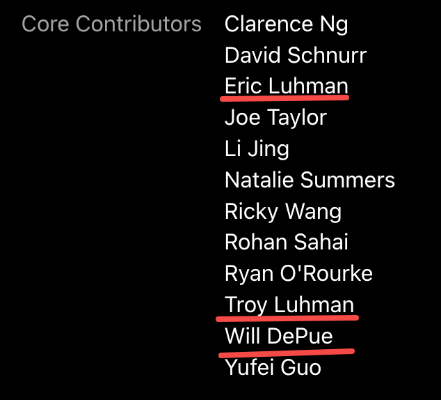 并且这次拉上了另外两位年轻的工程师Troy Luhman和Eric Luhman,这个三人小组,就像OpenAI内部的特种兵团一样。