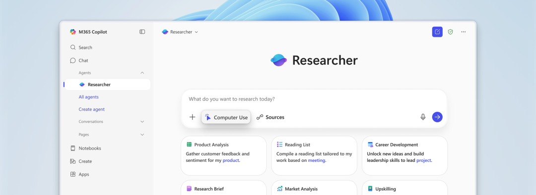 具体来说是Microsoft 365 Copilot中的Researcher智能体,新增了“计算机使用”(Computer Use)的能力,可以生成更智能的研究、更深入的洞察和更全面的报告。