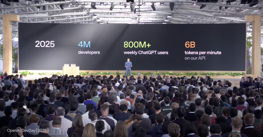 在10月7日OpenAI 2025开发者日上,奥特曼激动地宣布,ChatGPT的周活用户已经超8亿,OpenAI API每分钟有近60亿token产生,相比此前的3亿token,翻了20倍。