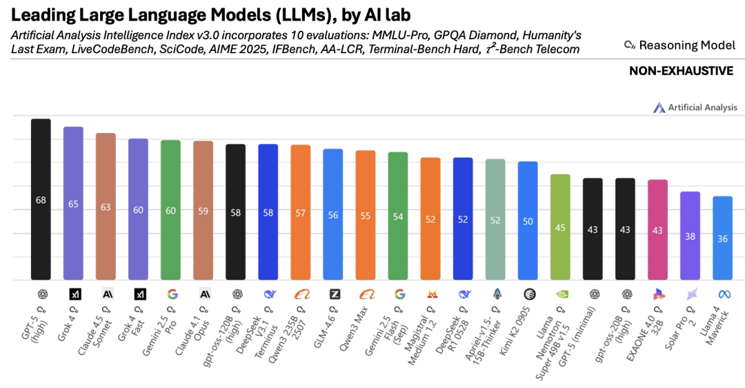 在最新的《人工分析智能指数》(Artificial Analysis Intelligence Index)排名中,前十名的模型已经全部被推理模型占据。