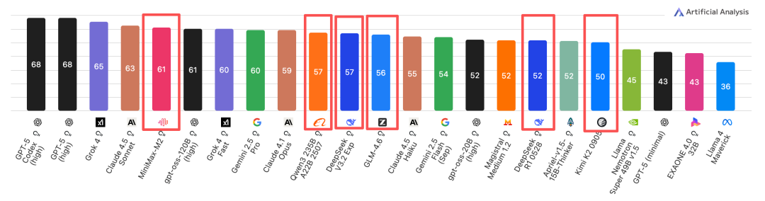 DeepSeek、Qwen、Z.ai、MiniMax分列5、6、7、8位,在前10中占据4席。