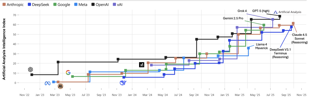 随着GPT-5(高算力模式)的发布,OpenAI重新夺回了最智能模型王座,但竞争也比以往任何时候都更加激烈。