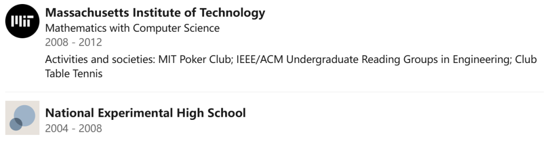 在MIT获得数学和计算机科学双学位后,陈信翰进入一家自营交易公司从事量化投资工作,负责为股票和期货开发机器学习算法。