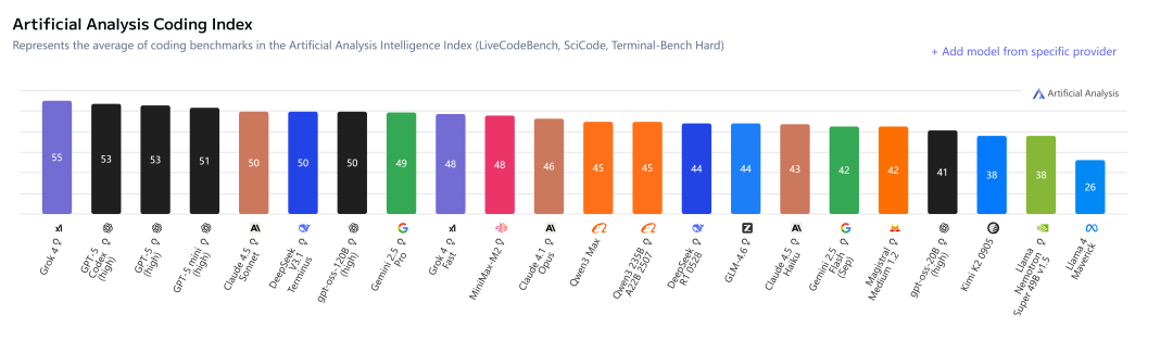 在Artificial Analysis Intelligence指数榜单上,除了排在前几名是闭源的OpenAI的GPT-5、谷歌的Gemini 2.5、xAI的Grok、Anthropic的Claude 4.5以外,紧随其后的都是开源模型。