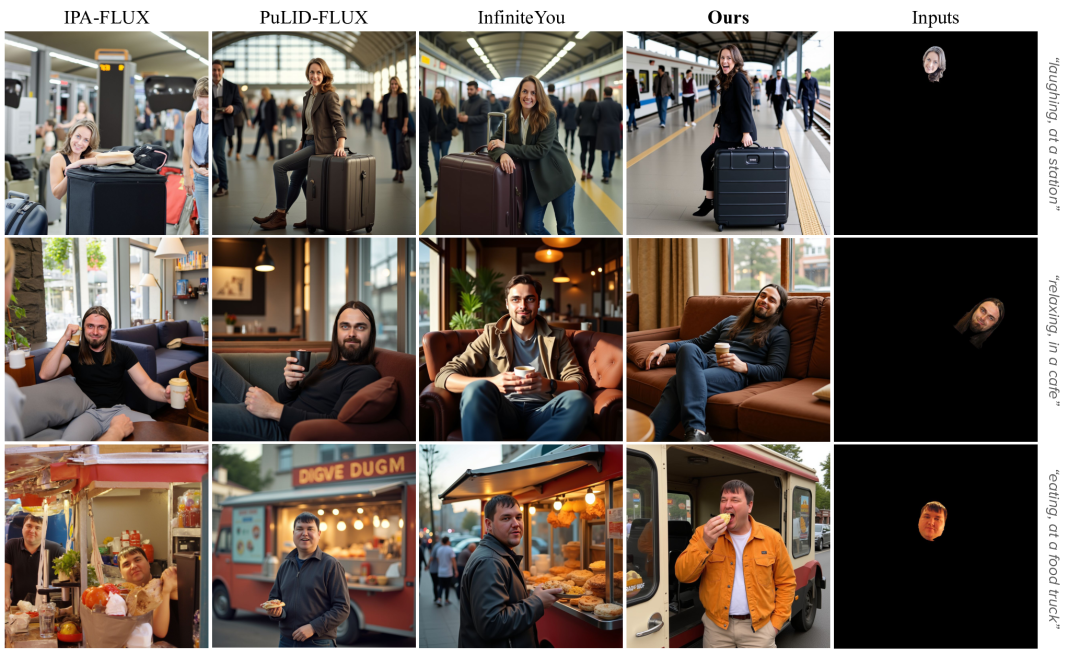 在保持身份一致的同时,能灵活生成不同表情与动作(如笑、闭眼、吃饭等),避免「贴脸」效果。