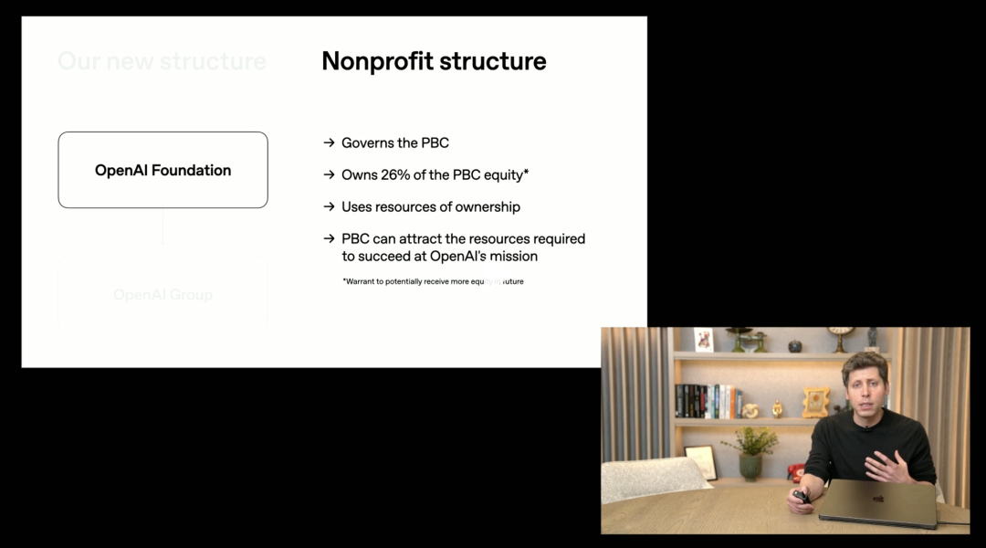 根据协议,OpenAI正式完成了重组:在非营利基金会之下设立OpenAI集团公共利益公司(PBC)作为营利实体。