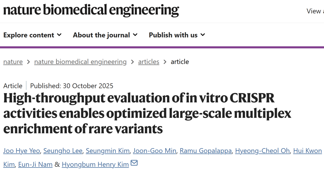 Yeo, J.H., Lee, S., Kim, S. et al. High-throughput evaluation of in vitro CRISPR activities enables optimized large-scale multiplex enrichment of rare variants. Nat. Biomed. Eng (2025).