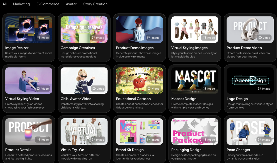 28位专家Agent,精准聚焦高价值的市场营销 、电子商务、创意故事、虚拟形象等领域。