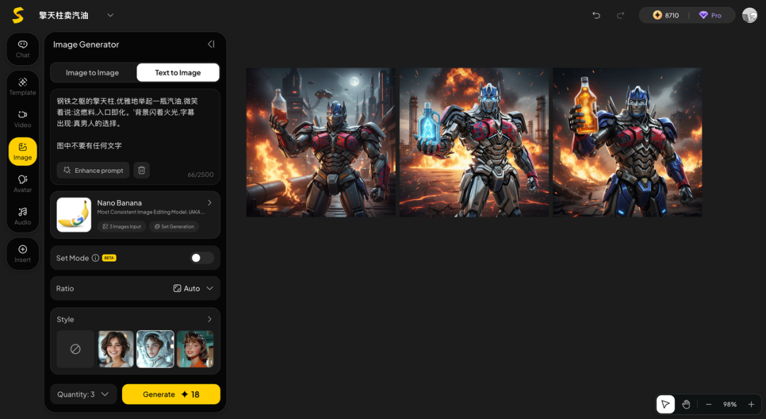 想象一个场景,让擎天柱为我们推销一款汽油。