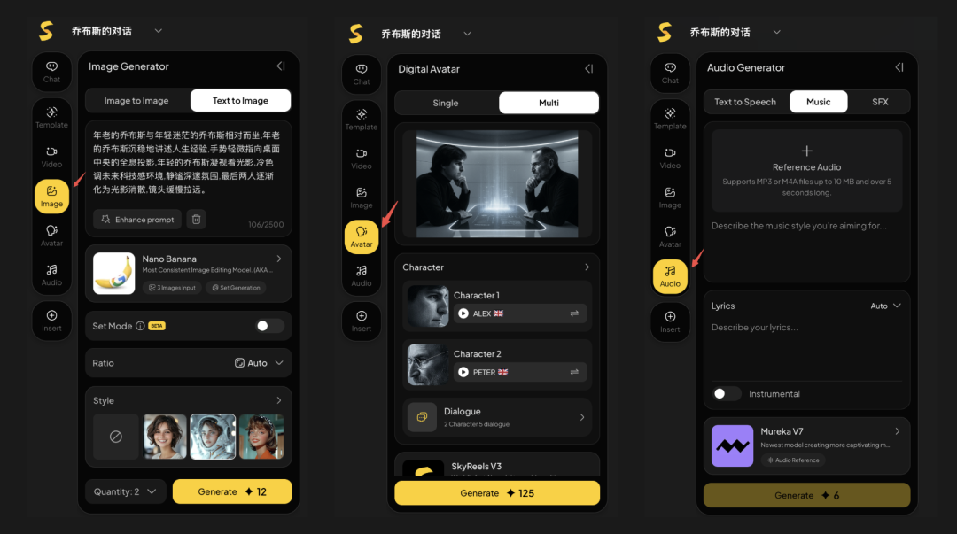 先对话碰撞灵感,再出图,然后直接把图片传入Avatar中实现最终效果。