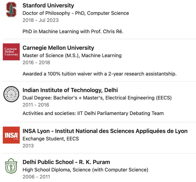 随后直通斯坦福AI实验室,师从AI教父级人物Chris Ré。