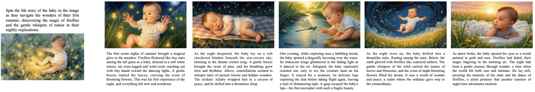给定一个主题,Emu3.5能生成一系列图文并茂、情节连贯、主角形象高度一致的绘本故事。这得益于其长序列建模能力,解决了传统模型生成多图时「张张换人」的痛点