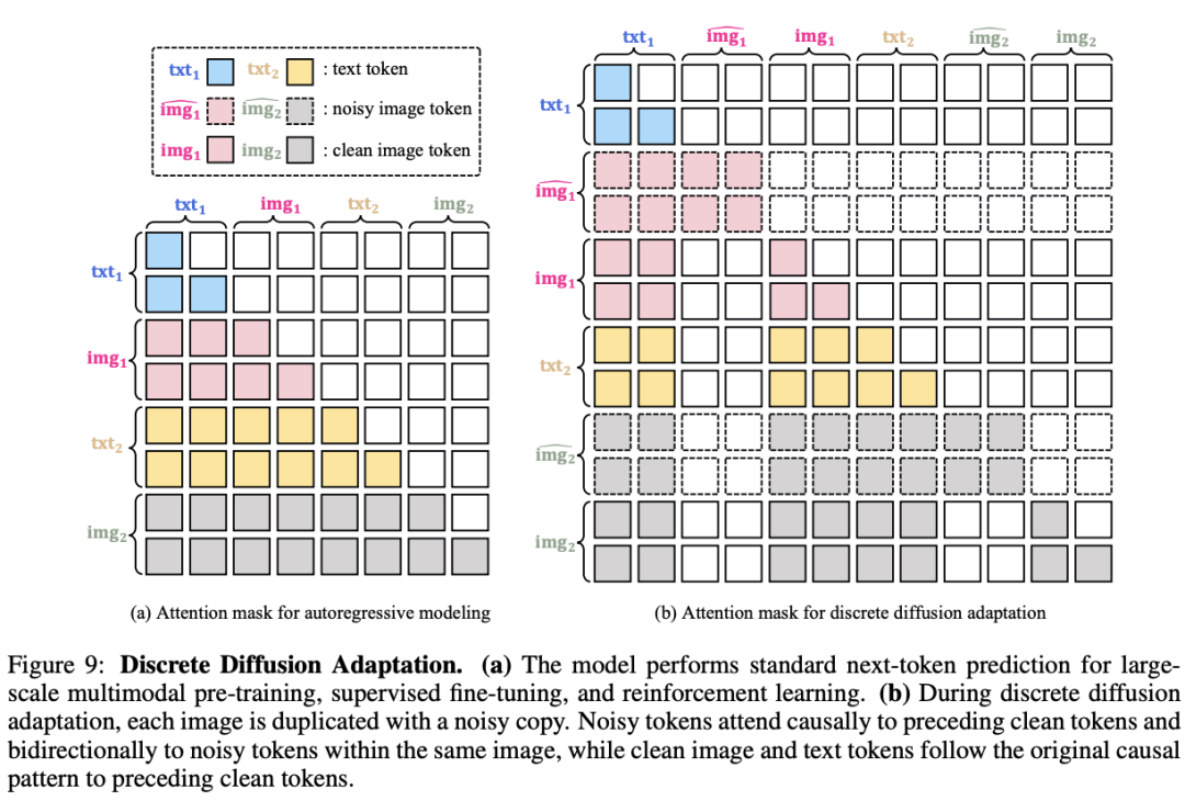 DiDA的核心思想是,在模型完成大规模的自回归预训练和后训练之后,通过一个轻量级的「适应」阶段,将其从「逐个Token预测」的模式,转换为「并行生成」的模式。