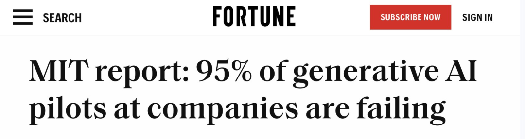 现实呢,来自MIT八月份研究报告称,全球95%企业应用GenAI都失败了。