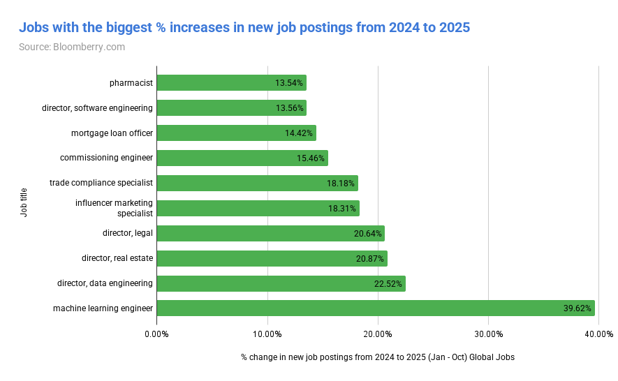 从2024年到2025年,机器学习工程师的招聘岗位飙升了40%,是所有岗位中增幅最大的。