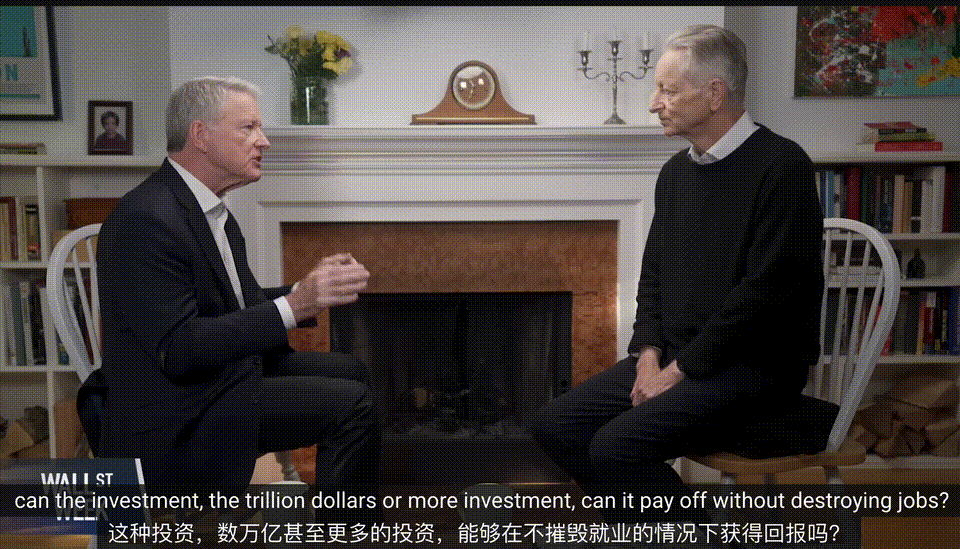 主持人问及Hinton一个沉重又值得深思的问题:万亿美元投资能否在不摧毁就业的情况下获得回报?