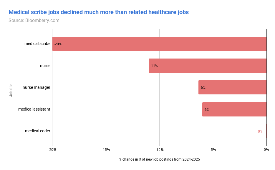 医疗记录员的工作很有价值,但恰好属于AI越来越擅长的结构化文档处理任务。