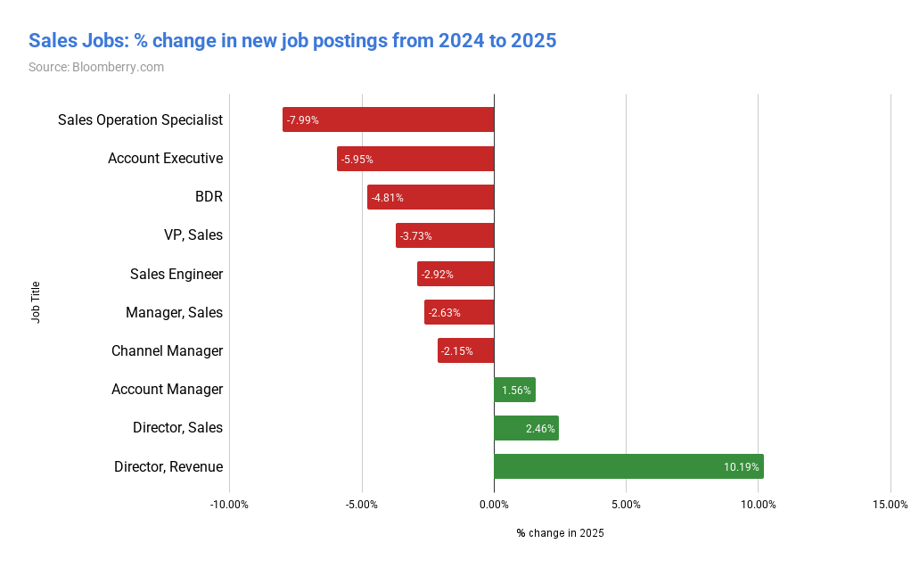 营收总监岗位10.2%的增幅,使其成为唯一一个显示出显著增长的销售职位。