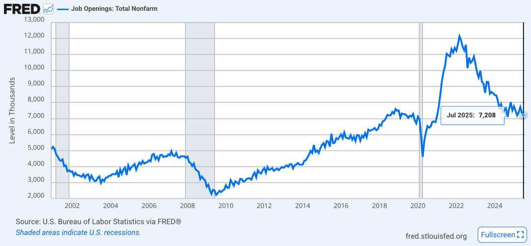 我们来确定一个基准:与2024年同期相比,2025年的招聘岗位数量下降了8%。