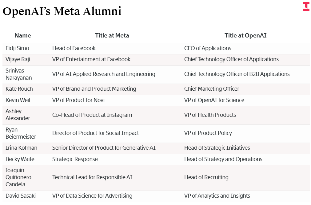 图:部分曾在 Meta 任职的员工,信息来自 The Information