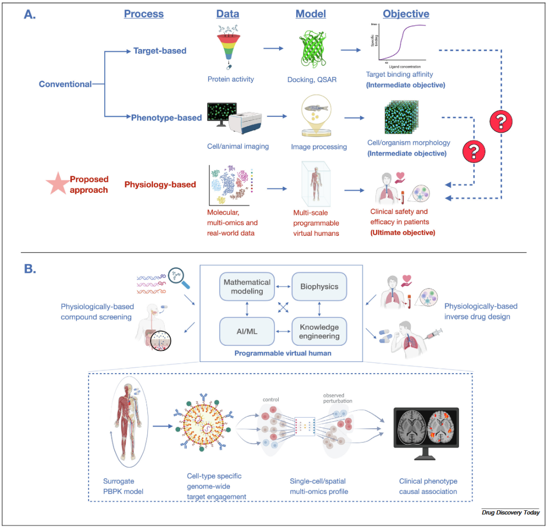 随着AI、高通量检测、单细胞与空间组学的发展,现在能够构建可编程虚拟人(PVH),一种动态的、多尺度的人体模型,为基于生理学的药物发现建立了全新的范式。这一方法为在药物研发流程更早阶段评估和优化药物的有效性与安全性提供了变革性的途径。