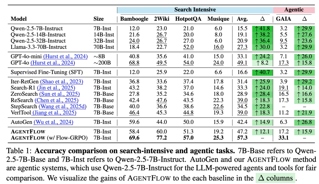 7B的AgentFlow在搜索任务上比GPT-4o(约200B)高8.2%
