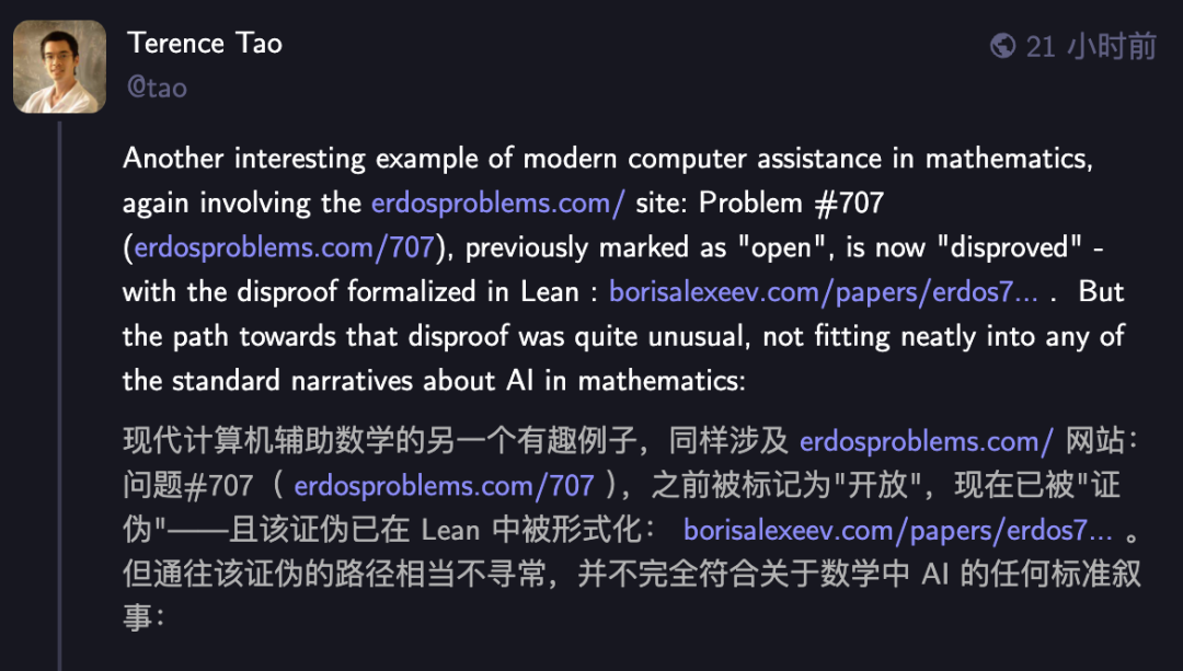 陶哲轩也注意到了这次新证明,认为这是计算机辅助证明的有趣例子。