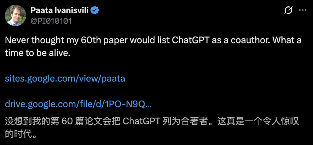 加州大学欧文分校数学教授Paata Ivanisvili,也把ChatGPT列为论文合作者。