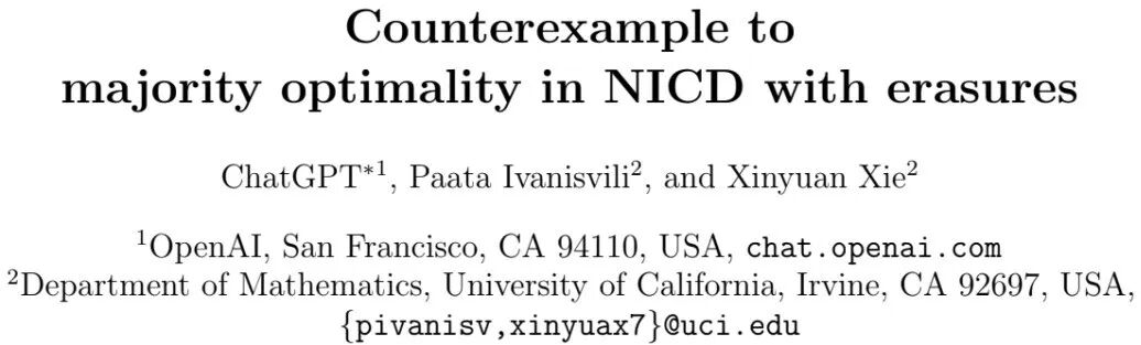 新论文由数学教授Paata Ivanisvili、2022届中科大本科校友Xinyuan Xie (谢新元)合作,ChatGPT是第一作者。