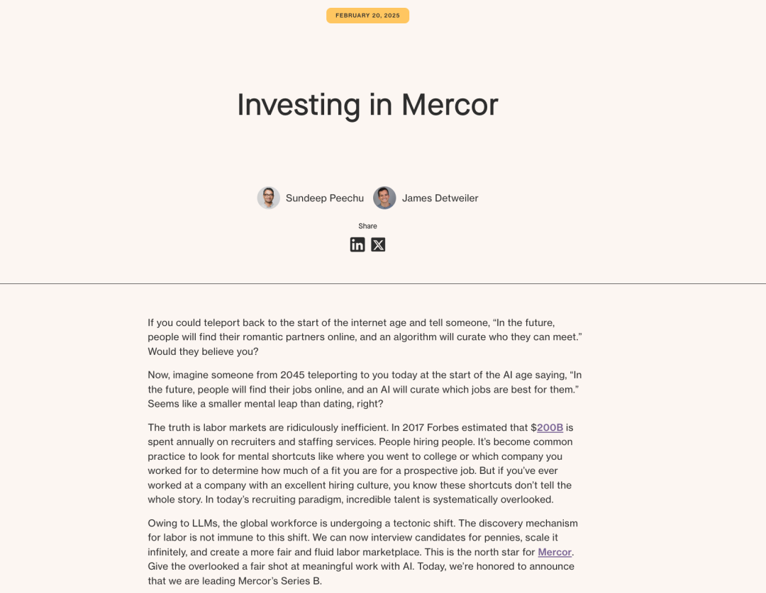 每一个颠覆性的故事,往往都始于一个「美丽的意外」。Mercor 也不例外。