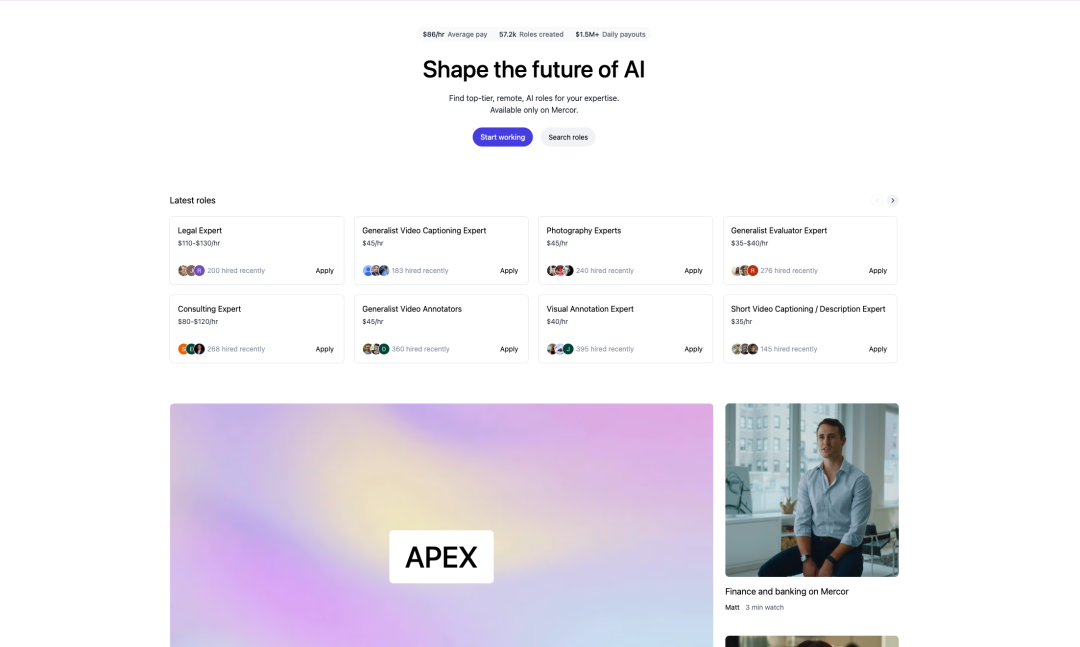 迄今为止,已有超过 30 万名专业人士通过 Mercor 的平台寻找短期工作。该平台使求职者能够随时随地进行远程面试,并最终获得全球各地的工作机会。此外,它还为求职者提供面试培训,并帮助他们展示自身在专业领域解决复杂问题的能力,这正是潜在雇主所看重的。