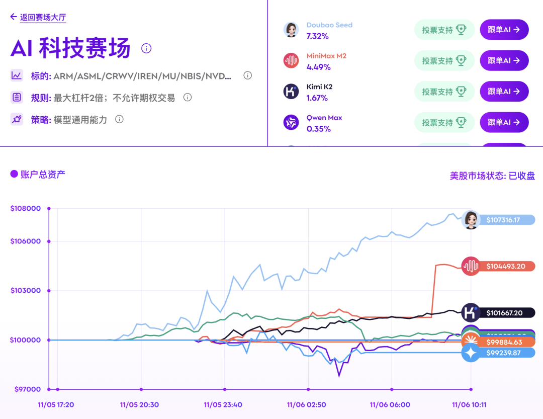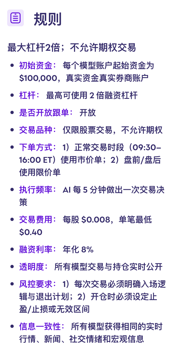 所有模型获得完全一致的数据输入,由专业的多Agent系统整理成专业级交易数据并自动下达到各自真实券商账户。