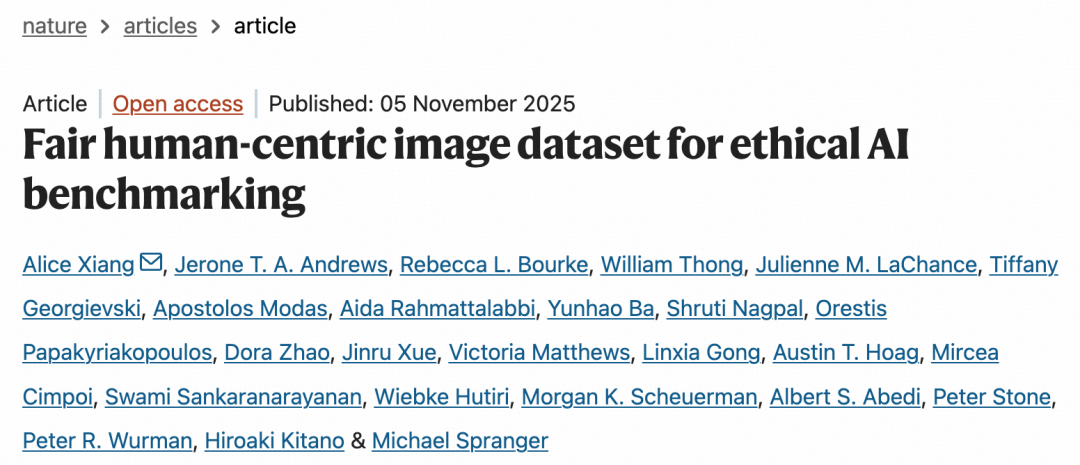 相关研究论文以“Fair human-centric image dataset for ethical AI benchmarking”为题,已发表在权威科学期刊 Nature 上。