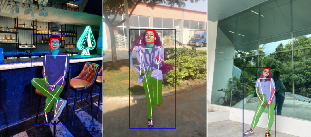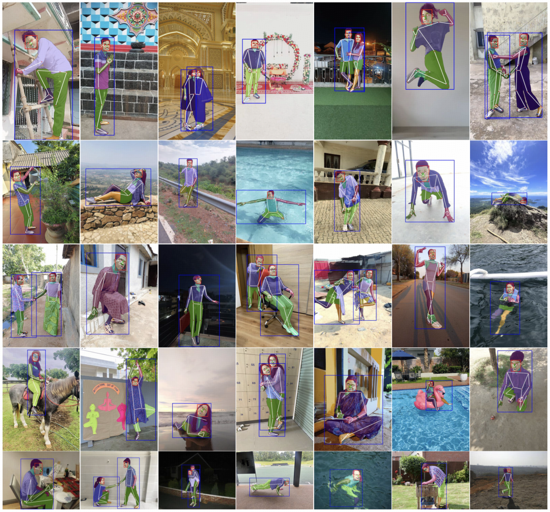 图|FHIBE 图像示例,包含详细的像素级标注、关键点、分割掩码和边界框。