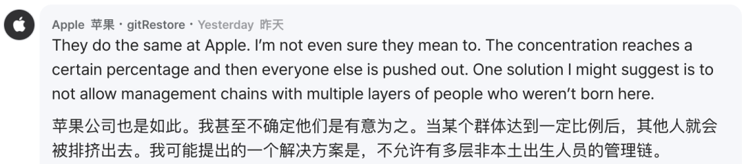 一位网友提到,在印度人主导的团队中,印度经理只雇佣印度工程师。不同的文化背景的团队,一样的剧情。