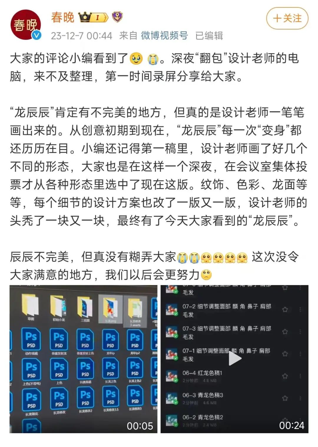 2023年底,龙年春晚的吉祥物「龙辰辰」亮相。