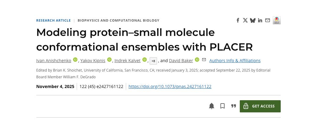 相关研究成果以「Modeling protein-small molecule conformational ensembles with PLACER」为题,已刊登《美国国家科学院院刊》(PNAS)。