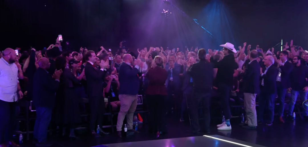 股东大会上,马斯克上台前,股东们将双手举过头顶,高喊Elon、Elon、Elon。
