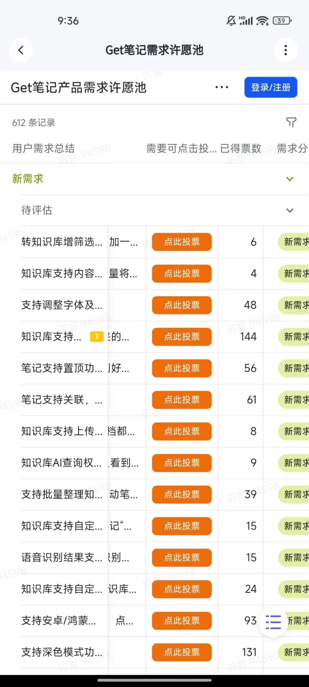 “Get笔记是和用户共创的产品”,收集需求本身没多少价值,但关键是让用户投票。