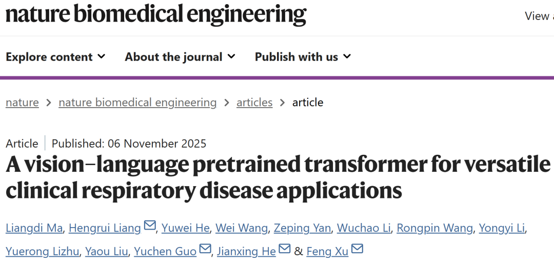 Ma, L., Liang, H., He, Y. et al. A vision–language pretrained transformer for versatile clinical respiratory disease applications. Nat. Biomed. Eng (2025).