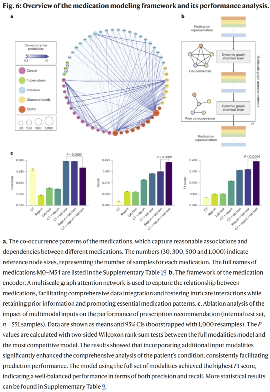 多模态输入结构(CT、报告、检验、人口统计学与药物图谱)。