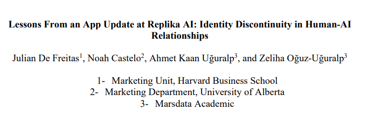 而一篇学术研究甚至把这种现象称为「身份中断(identity discontinuity)」——更新后的AI被视作」另一个人」,用户会对旧版本产生哀悼和怀念。